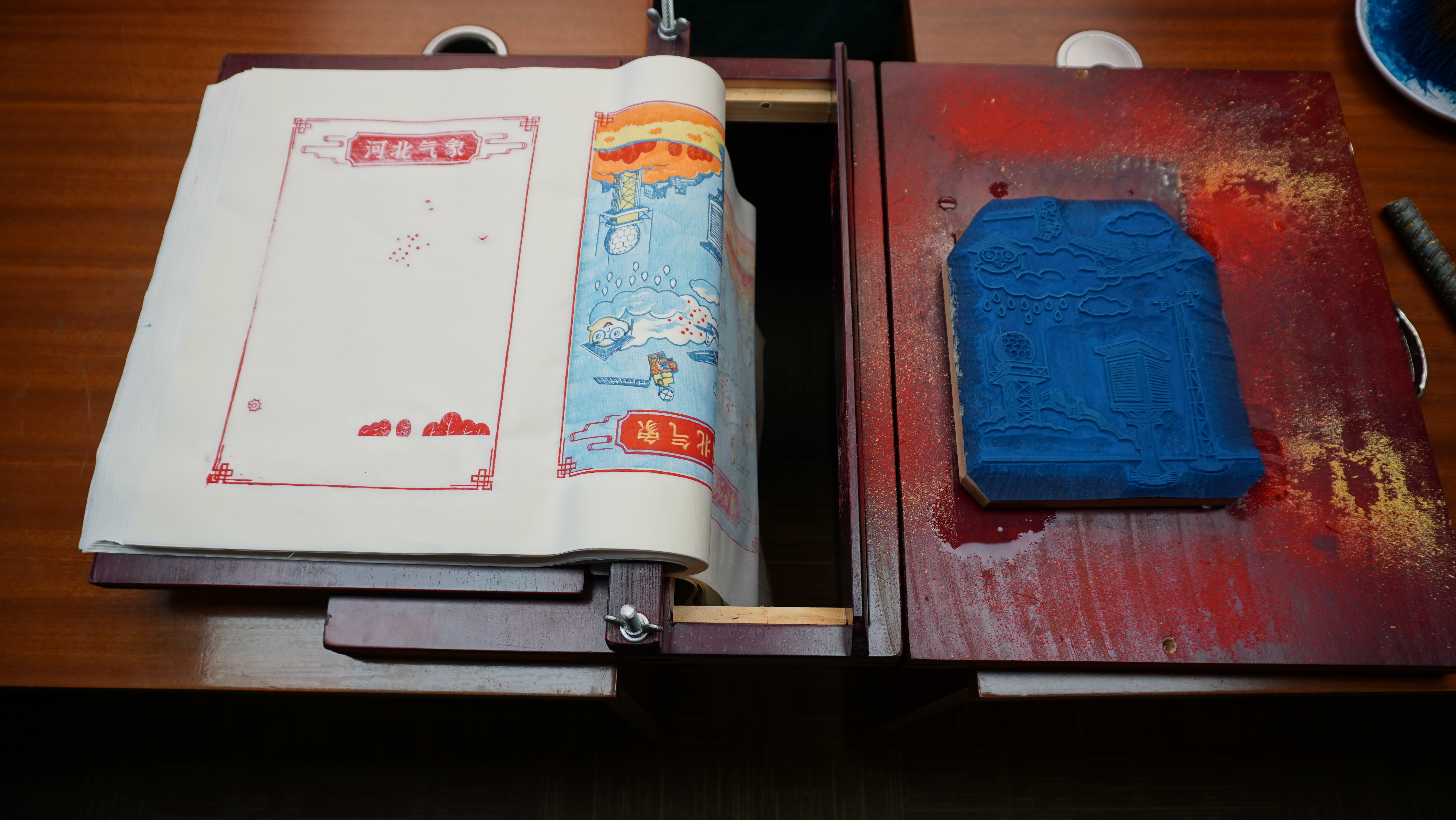 最具特色的是非遗武强年画动手实践区,本次活动创新将气象科普与武强木版年画融合,邀请专业指导老师带领青少年创作气象主题年画,把气象知识融入传统艺术,让孩子们在指尖传承中感受文化底蕴,实现科普效果与艺术性的双重提升。